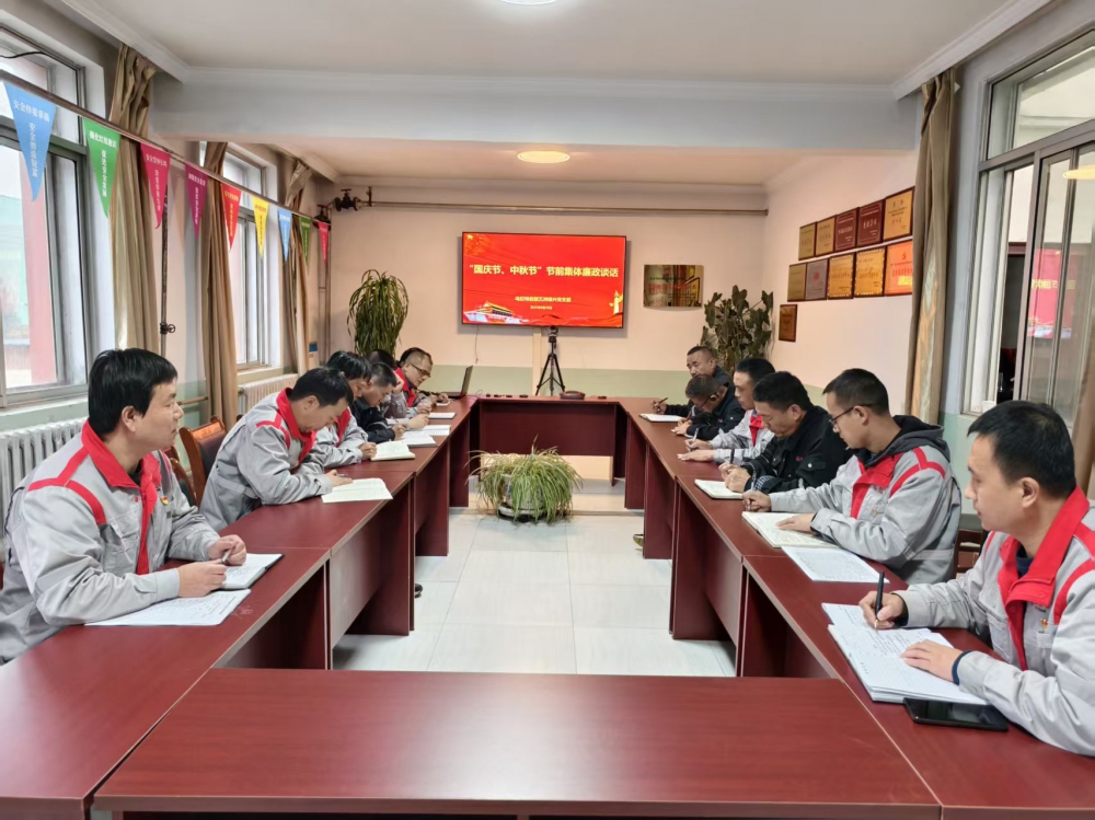 為進一步加強黨風廉政建設,營造風清氣正的節(jié)日氛圍,9月28日,內(nèi)蒙項目部組織開展中秋、國慶雙節(jié)前集體廉政談話會。會議由公司黨支部副書記、紀檢員張育波主持,公司黨支部副書記、經(jīng)理史小亮作總結(jié)講話,公司領(lǐng)導班子成員及各部室負責人參加會議。