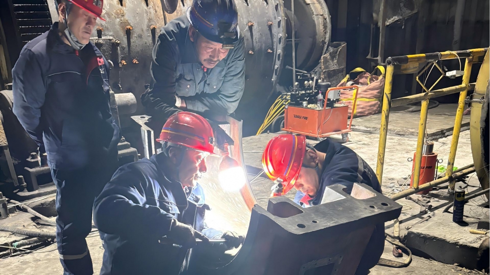 故障發(fā)生后,白玉銀興公司經(jīng)理田東清迅速抵達(dá)現(xiàn)場,根據(jù)設(shè)備故障狀況進(jìn)行現(xiàn)場研判并采取果斷措施進(jìn)行停機(jī)搶修。在搶修現(xiàn)場,黨員干部主動亮身份、扛重?fù)?dān),充分發(fā)揮先鋒模范作用,成為搶修隊(duì)伍中的“主心骨”。田東清帶領(lǐng)維修團(tuán)隊(duì)趴在設(shè)備旁仔細(xì)排查故障點(diǎn),在刮瓦環(huán)節(jié)精細(xì)操刀,憑借多年豐富經(jīng)驗(yàn)和專業(yè)技術(shù)儲備,勾畫出完美的弧線。為了加快搶修進(jìn)度,搶修人員放棄休息時(shí)間,輪班作戰(zhàn)、每天連續(xù)工作16小時(shí),累了就趴在桌上短暫小憩,始終堅(jiān)守在搶修一線。食堂將飯菜、飲用水送到現(xiàn)場,確保搶修人員有充沛的體力。